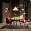 Le lampade da terra Hover presentano un paralume che sembra separato dalla base, collegato perfettamente da un unico cavo che attraversa lo stelo per poi uscirne. Il risultato finale crea l’illusione che la sorgente luminosa sia quasi priva di peso e fluttui nell’aria, come un palloncino.