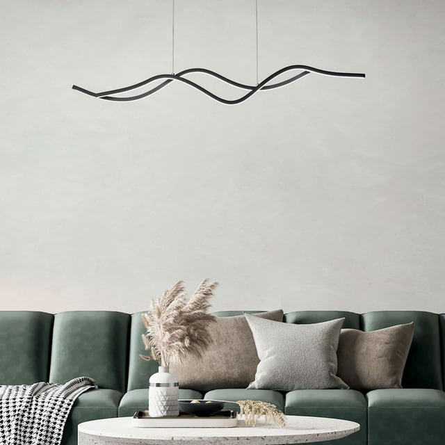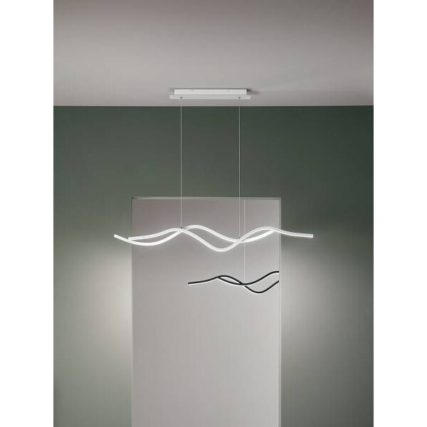 Una lampada sospesa in metallo e metacrilato con led integrato K3000 dimmerabile . La sua forma sottile e sinuosa, rende il prodotto adatto ad una piacevole luce diffusa sia sui tavoli che in camere dalla dimensione non eccessiva.