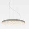 Anelli luminosi liberamente sospesi. La lampada, concepita per l’illuminazione di ampi spazi retail o ambienti pubblici, ha il corpo illuminante in polietilene bianco e sorgente LED dimmerabile.