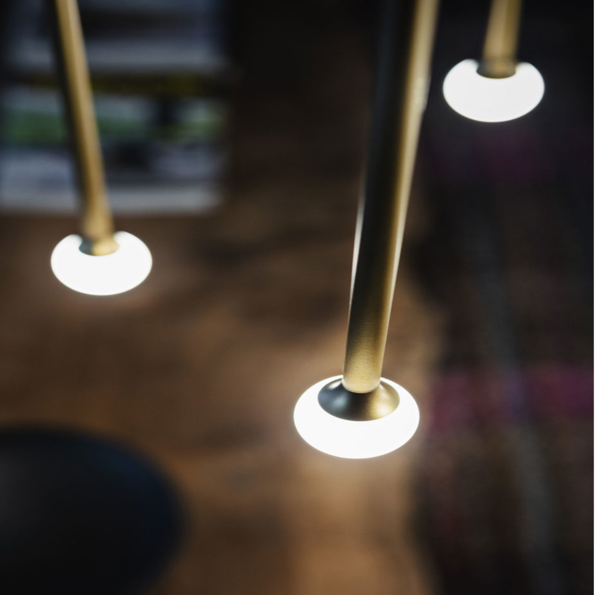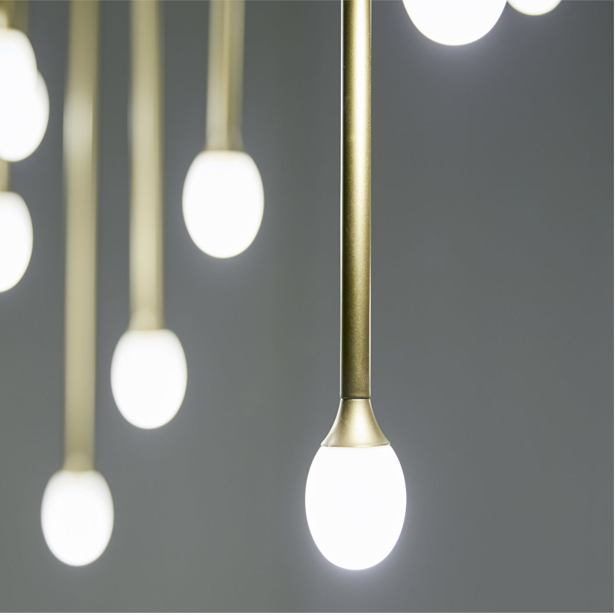 Sospensione composta da un’asta in metallo nelle finiture opache: oro, oro rosa e grafite. Disponibile in tre dimensioni: Large, Medium e Mini, utilizzabile come elemento singolo o multiplo. Rosone singolo nelle stesse finiture della struttura.