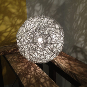 Lampada da tavolo realizzata con filo intrecciato di alluminio